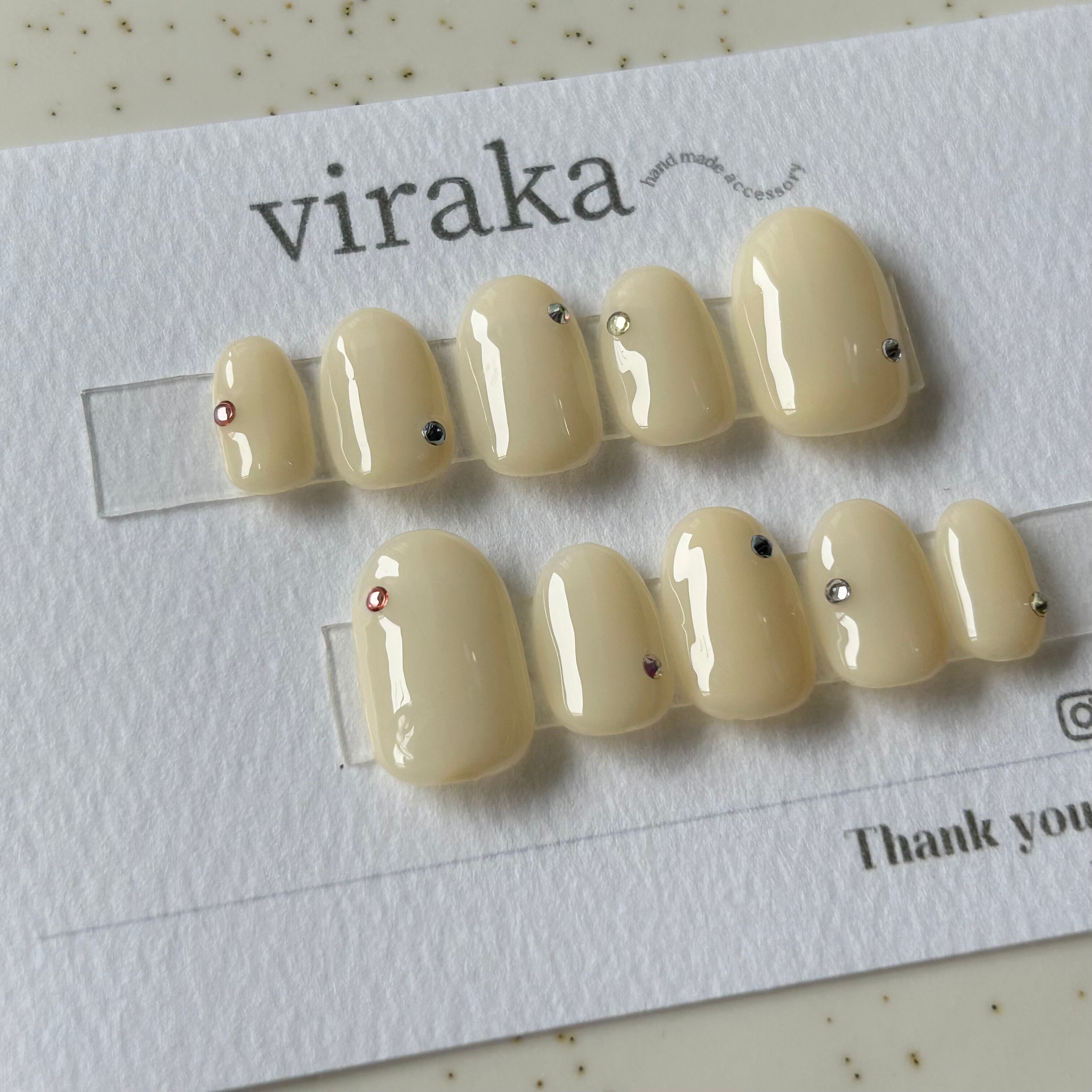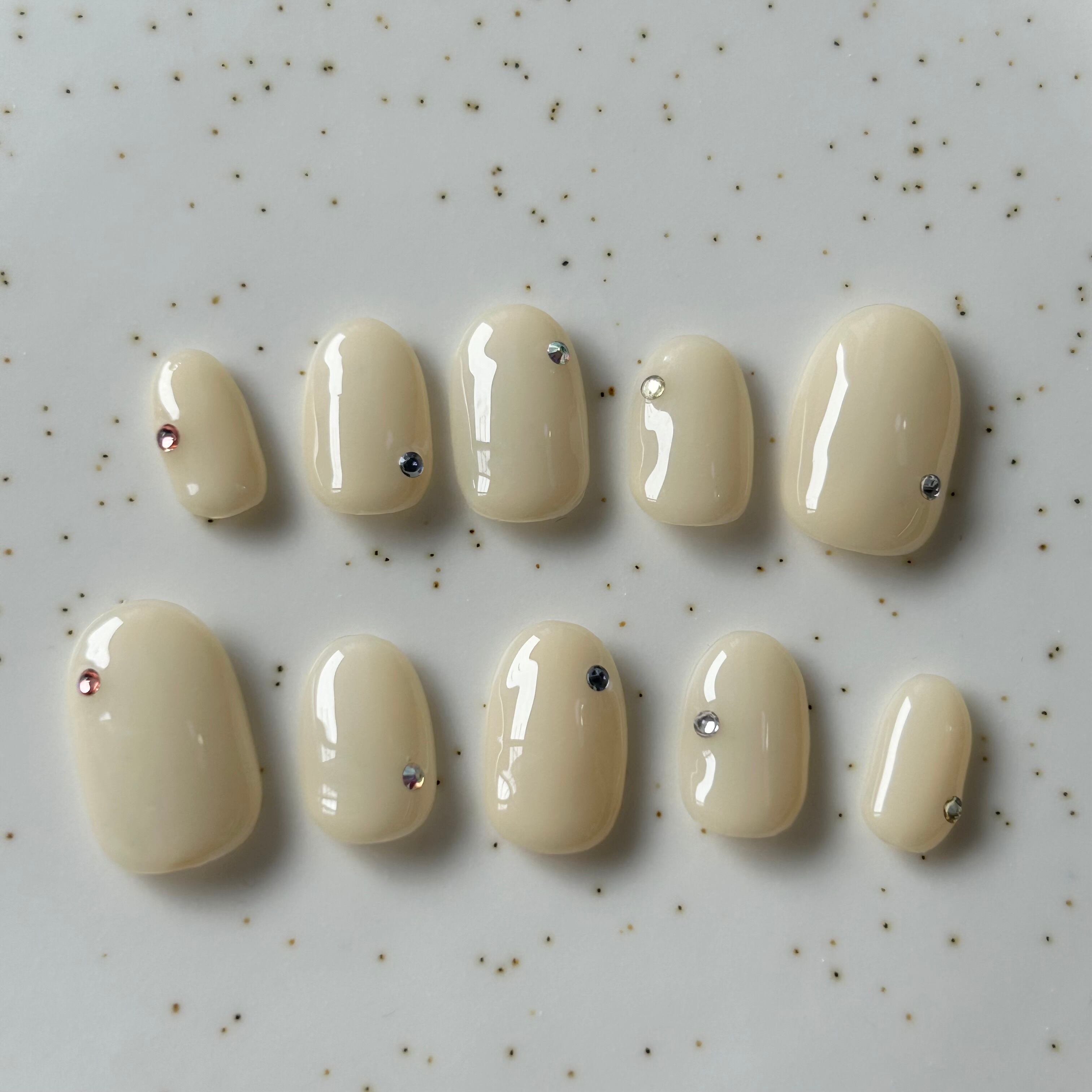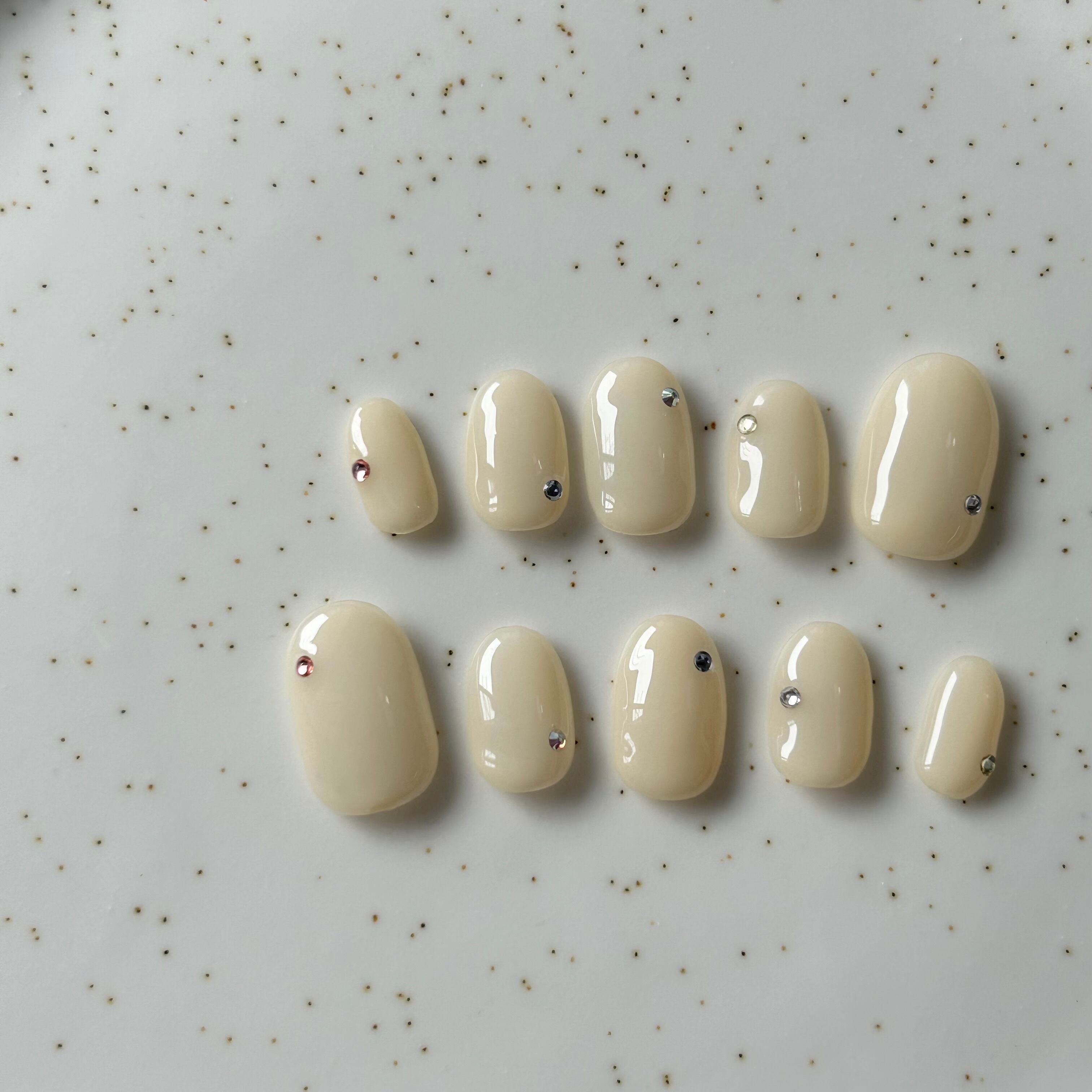 クリームイエローのワンカラーに5色のカラーストーンで落ち着いたカラフルチップに仕上げてます^_^