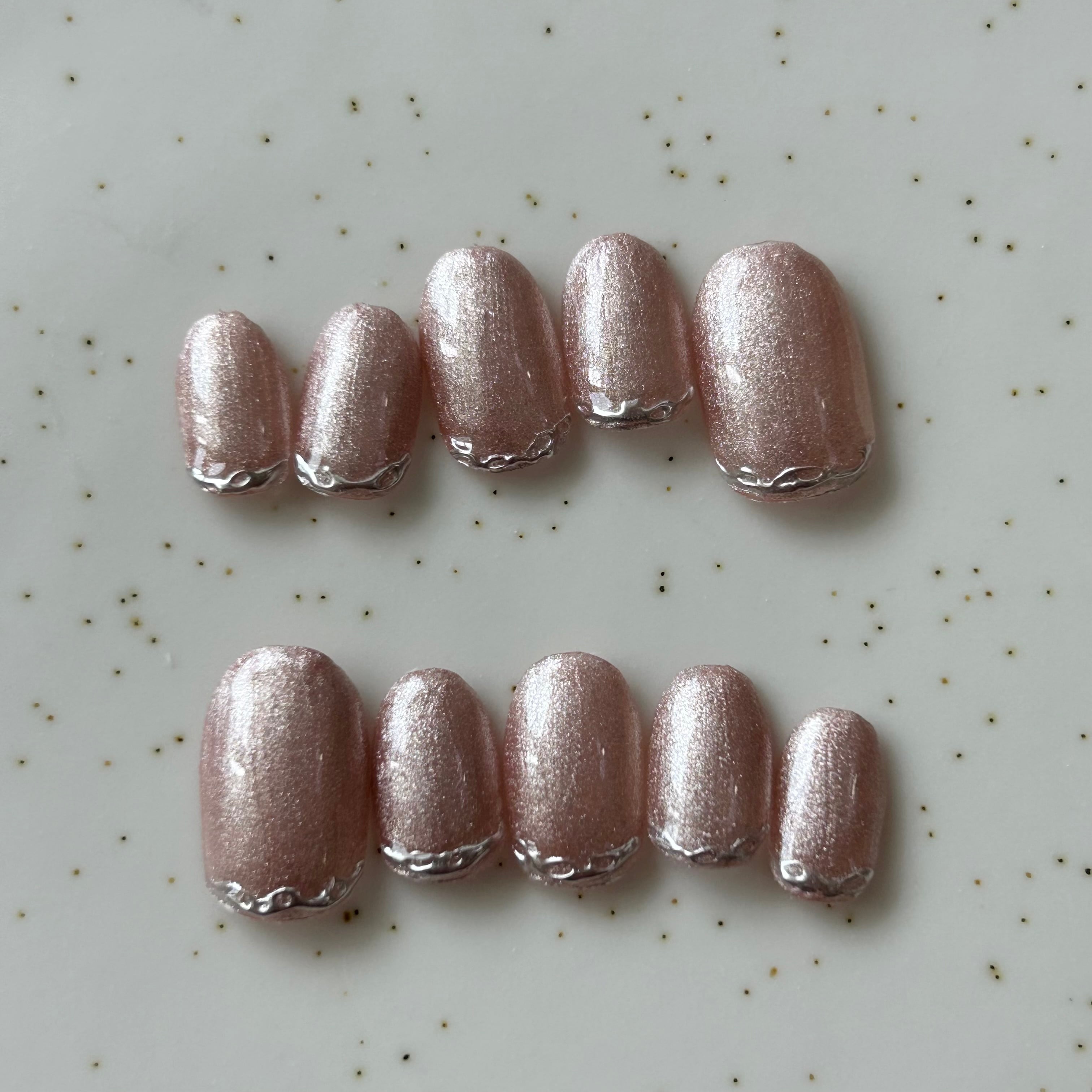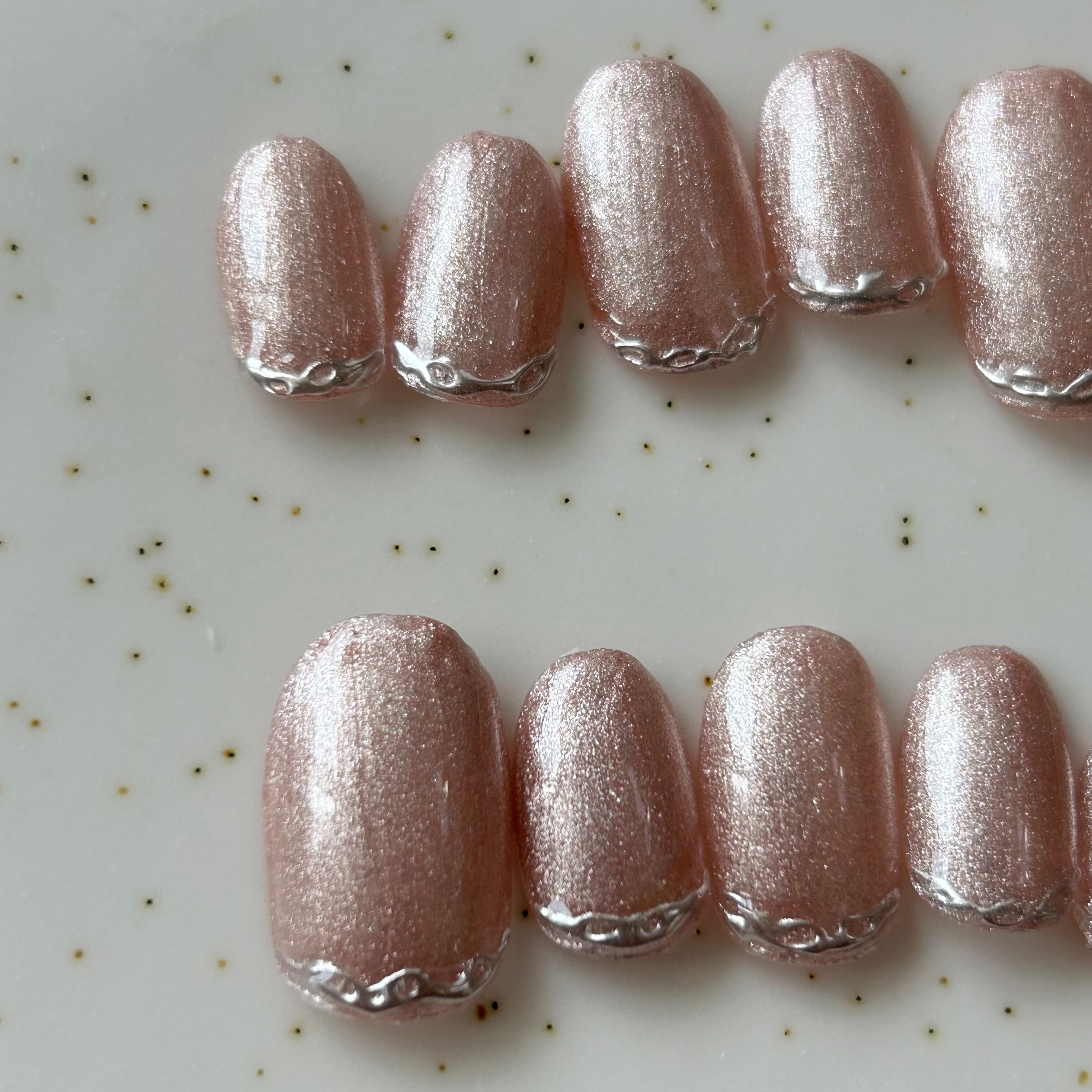 大人っぽいピンクのマグネットに根元にシルバーラインで印象のあるお手元に♡