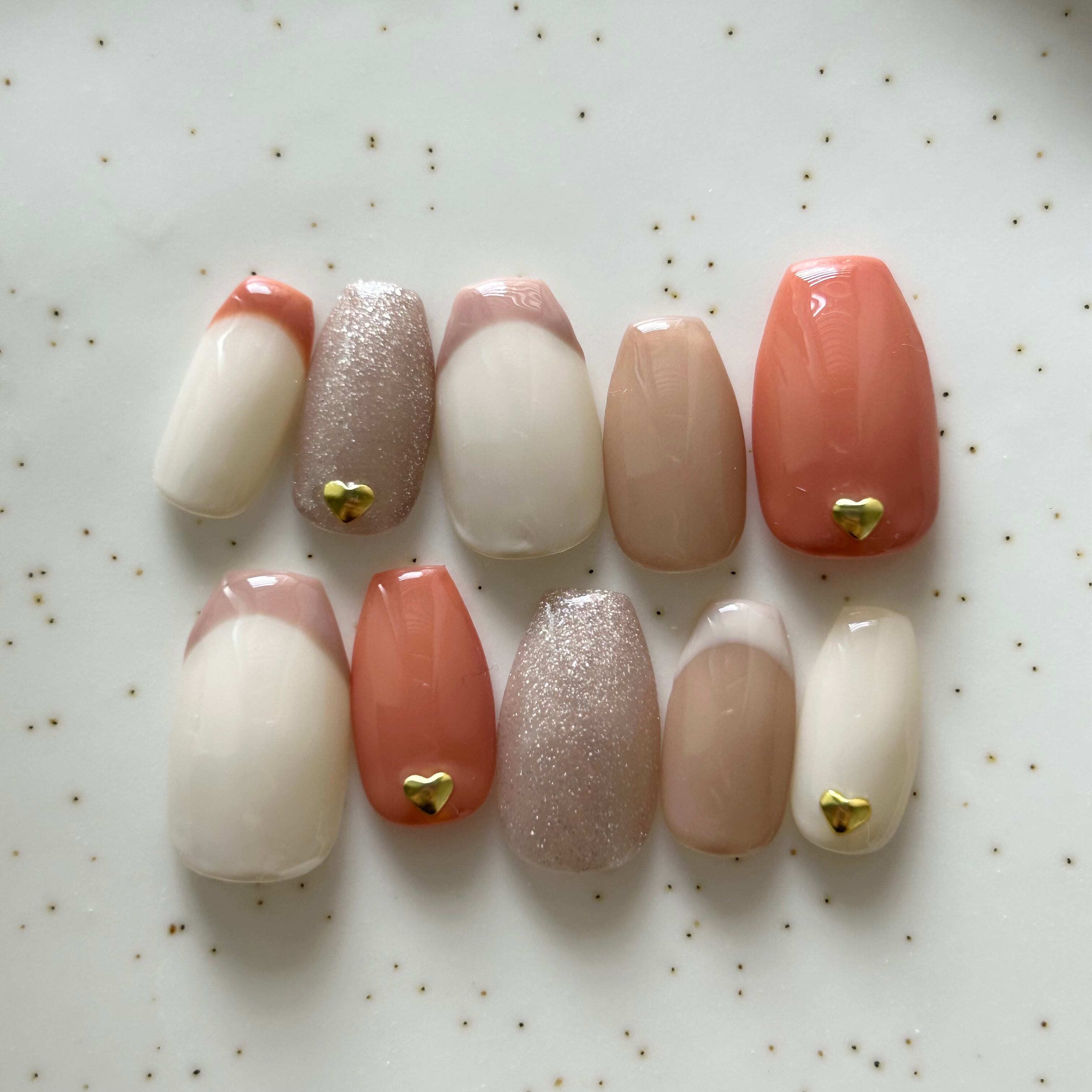 バイカラーのフレンチにハートのゴールドストーン⋈