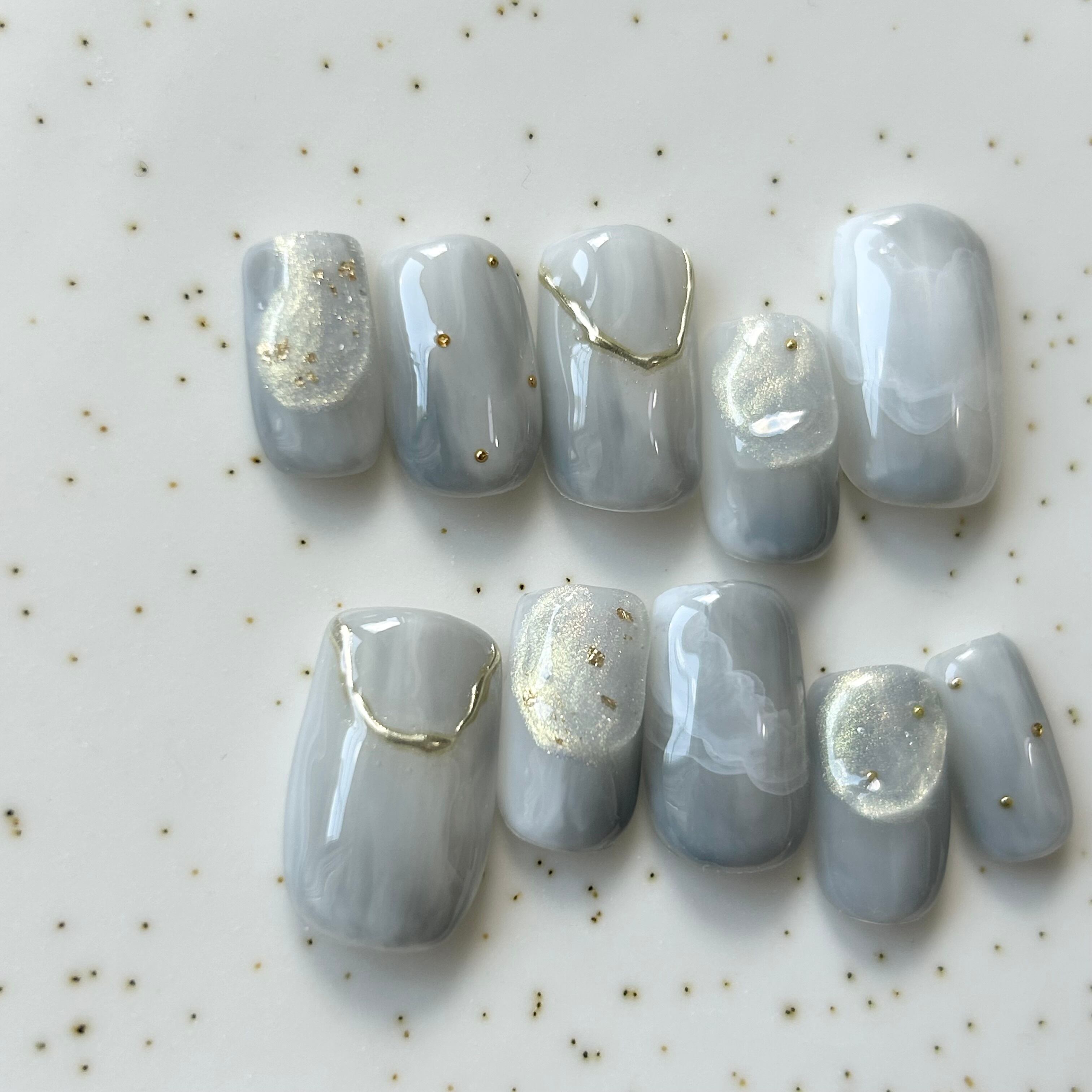 くすみグレーとホワイトよりのアイボリーと白のインクを合わせてもやもやもくもく☁︎︎のデザインです。外だと4枚目の写真で、室内だと4枚目と1〜3枚目の間の色です。