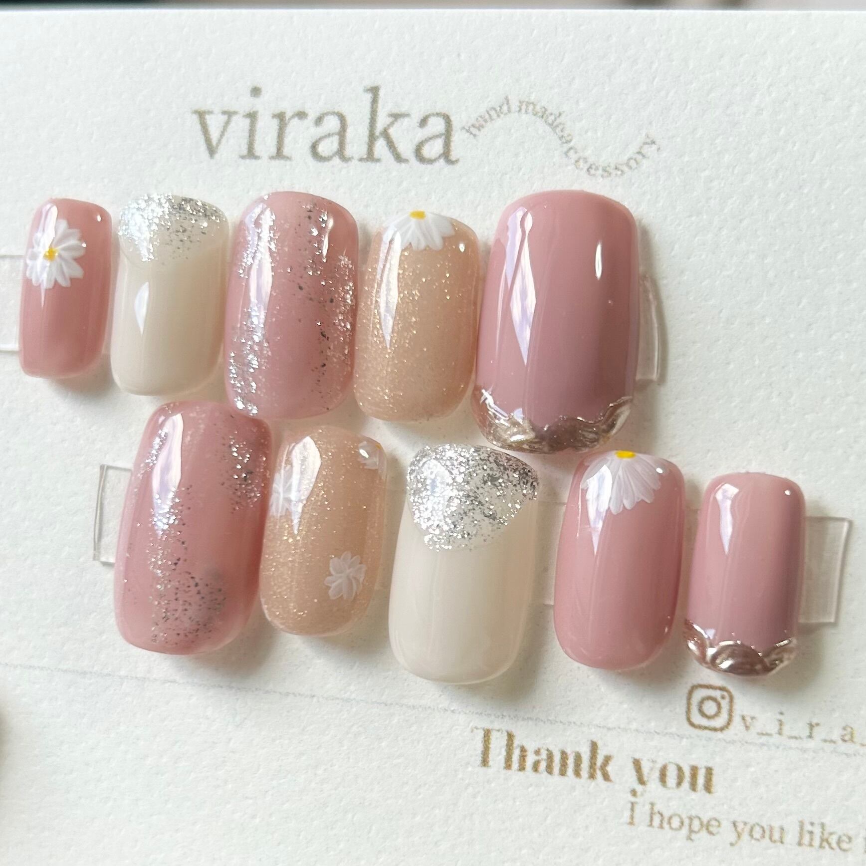 マーガレットのお花と可愛い色の組み合わせで明るい気持ちになるデザインです!