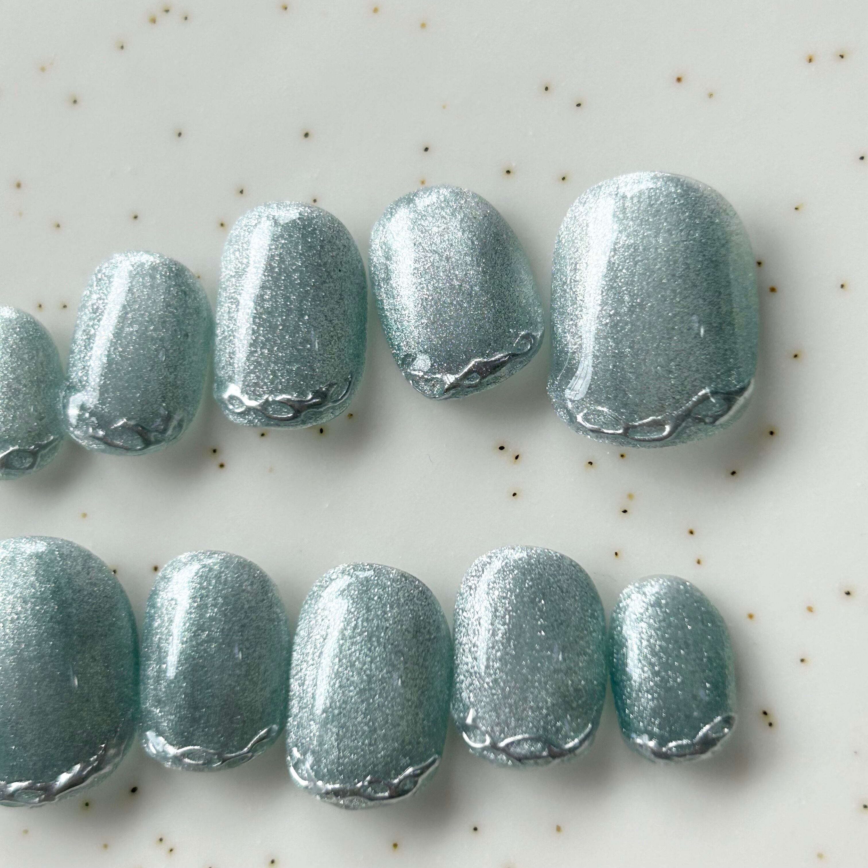 水色のマグネットに根元にシルバーラインで印象のあるお手元に♡