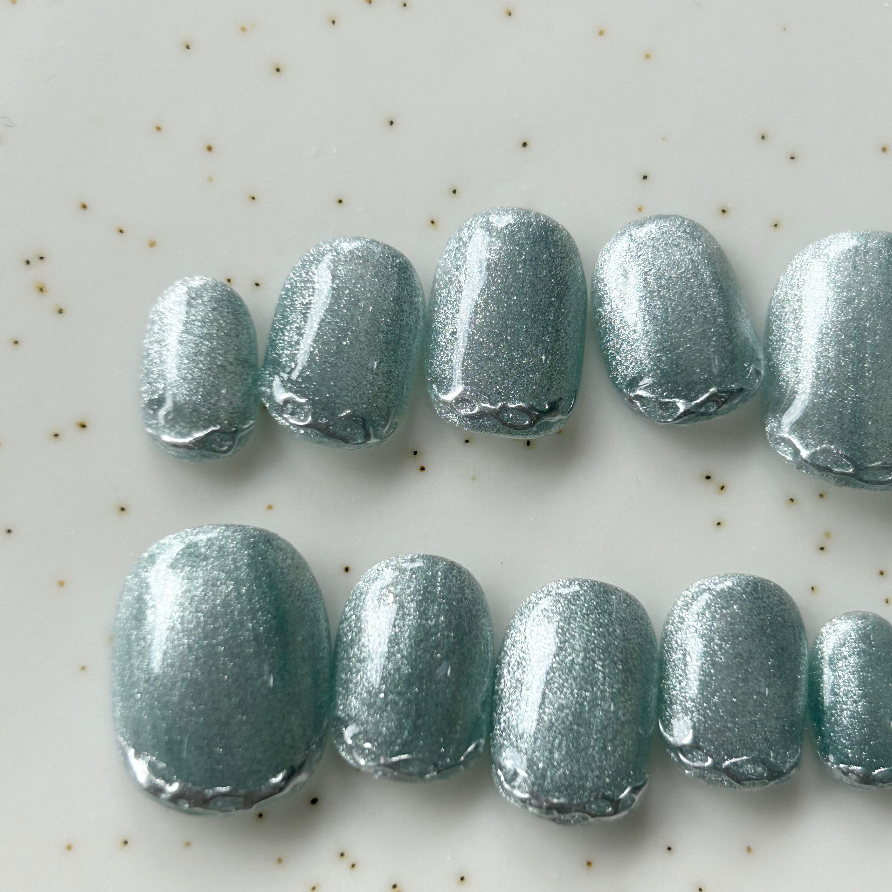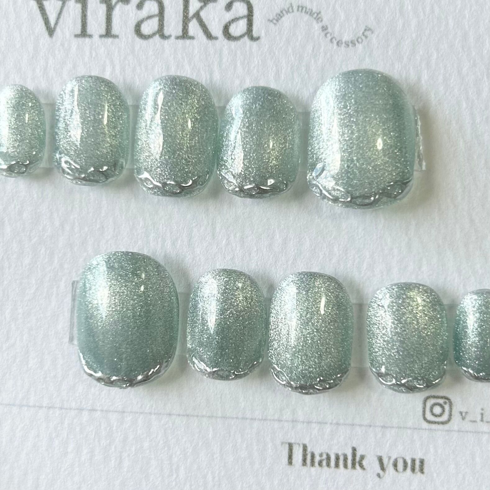 水色のマグネットに根元にシルバーラインで印象のあるお手元に♡