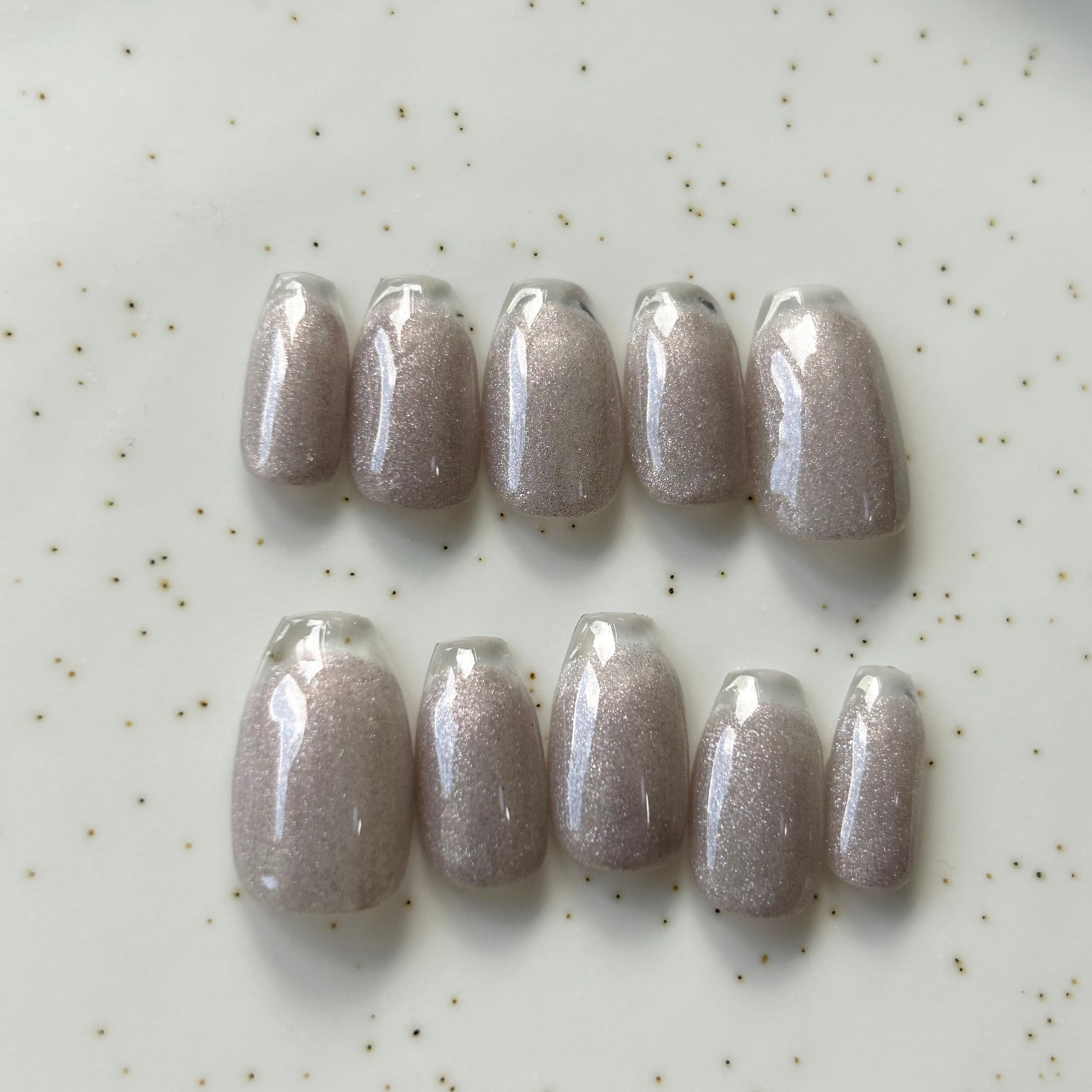 先端がクリアのデザインとなってるので、自爪よりチップの長さが2.5mmくらい長い方がいいです。