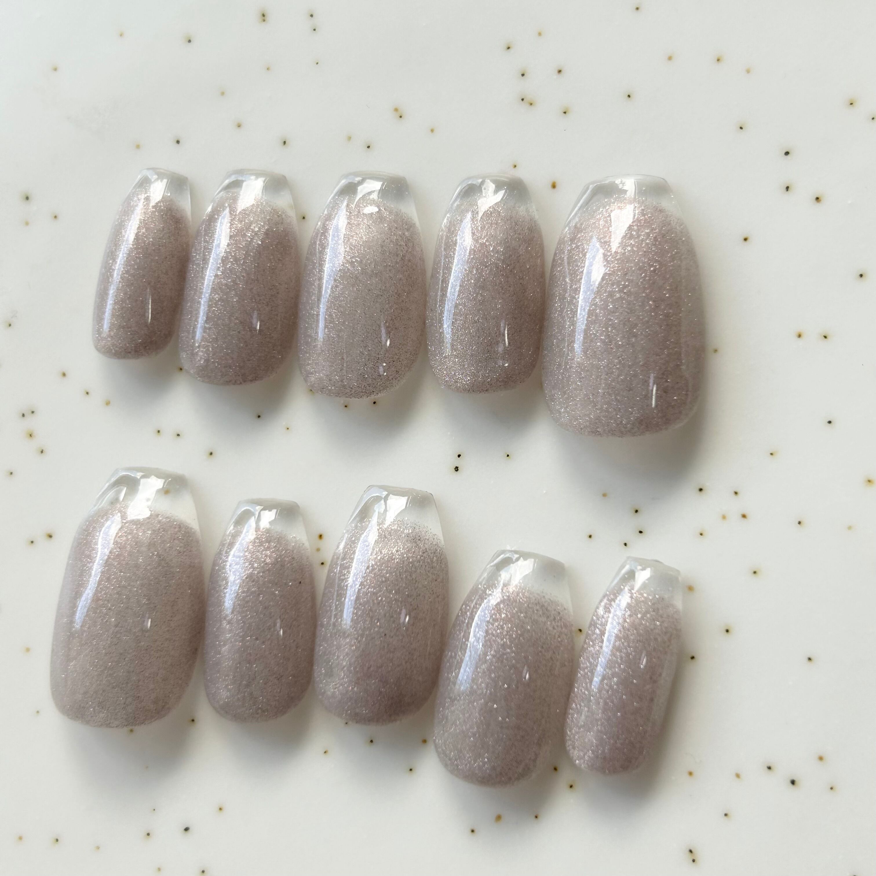 先端がクリアのデザインとなってるので、自爪よりチップの長さが2.5mmくらい長い方がいいです。