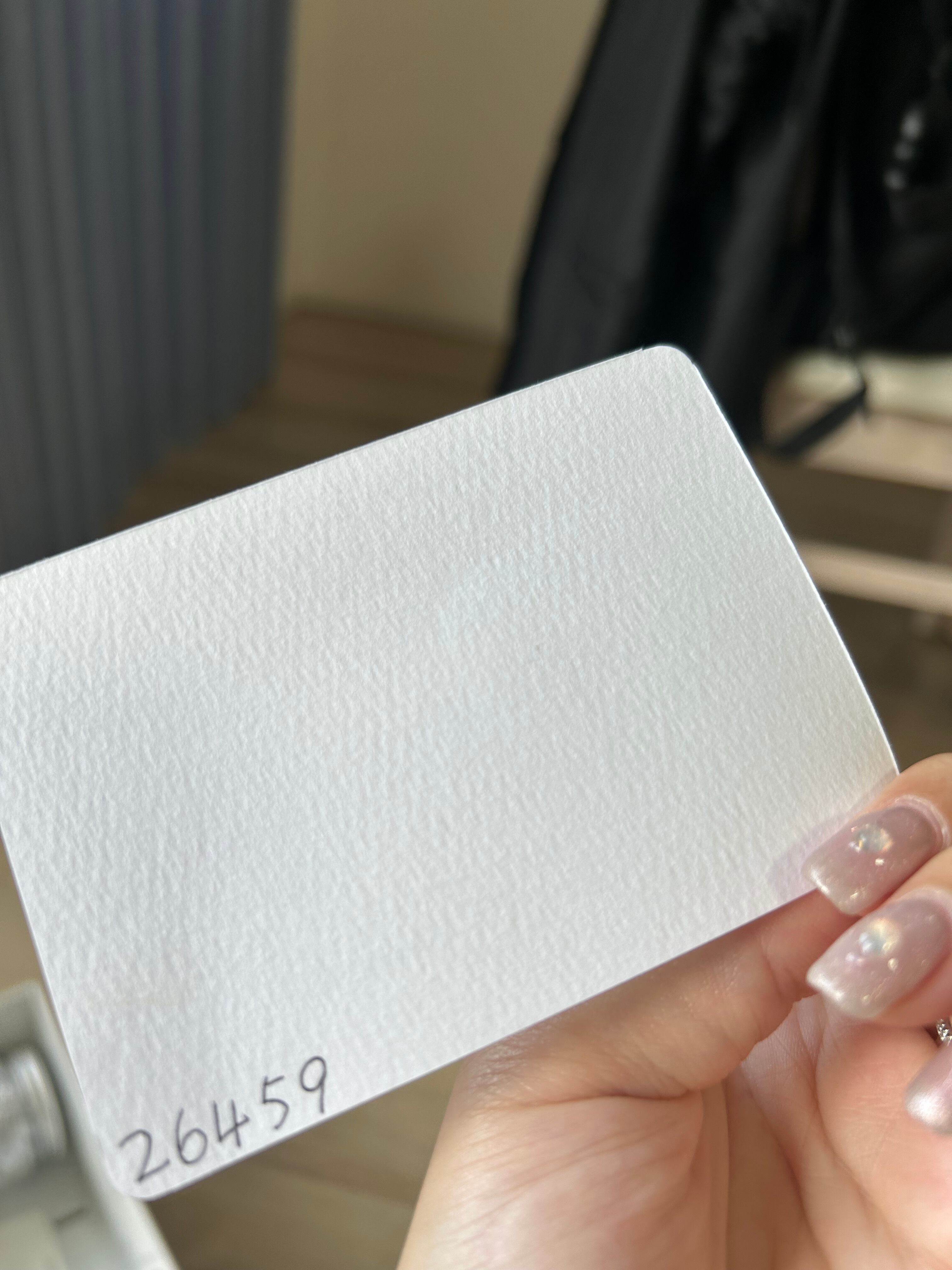 外だと4枚目の写真で、室内だと4枚目と1〜3枚目の間の色です。